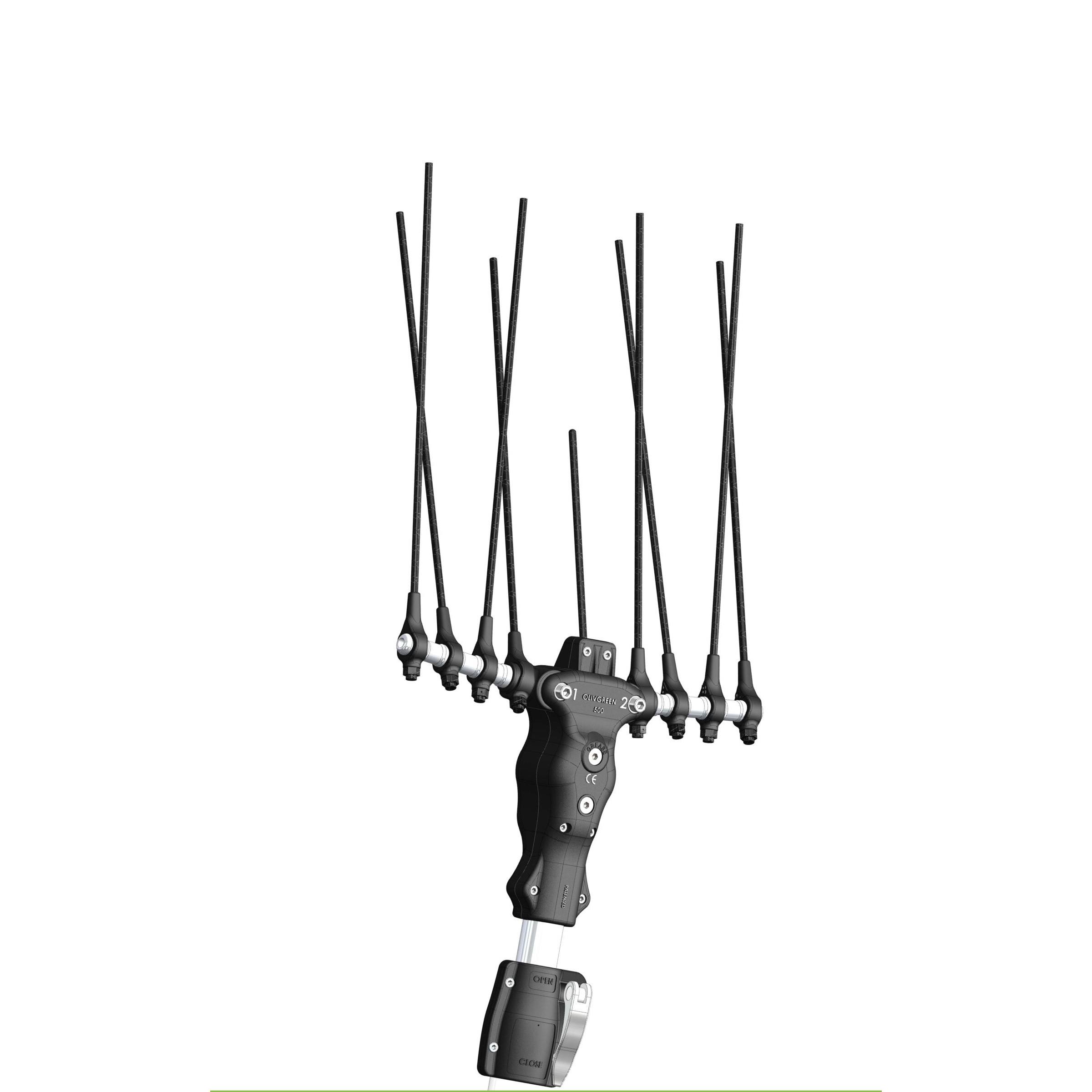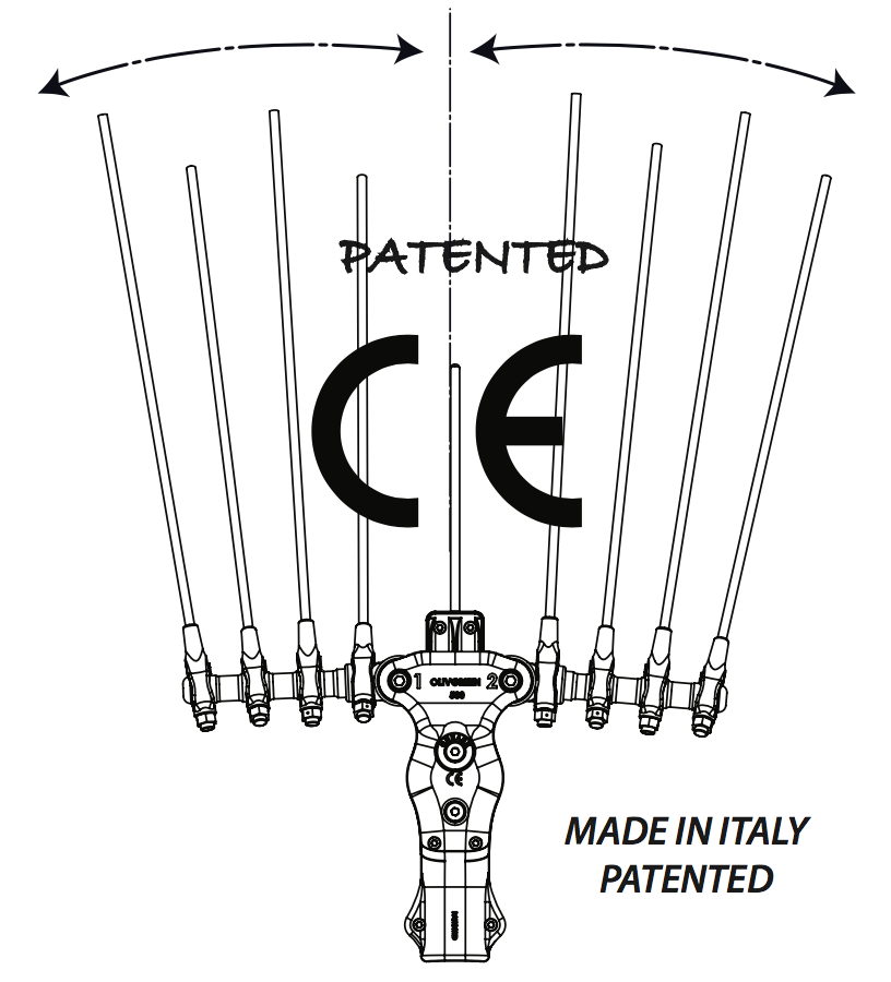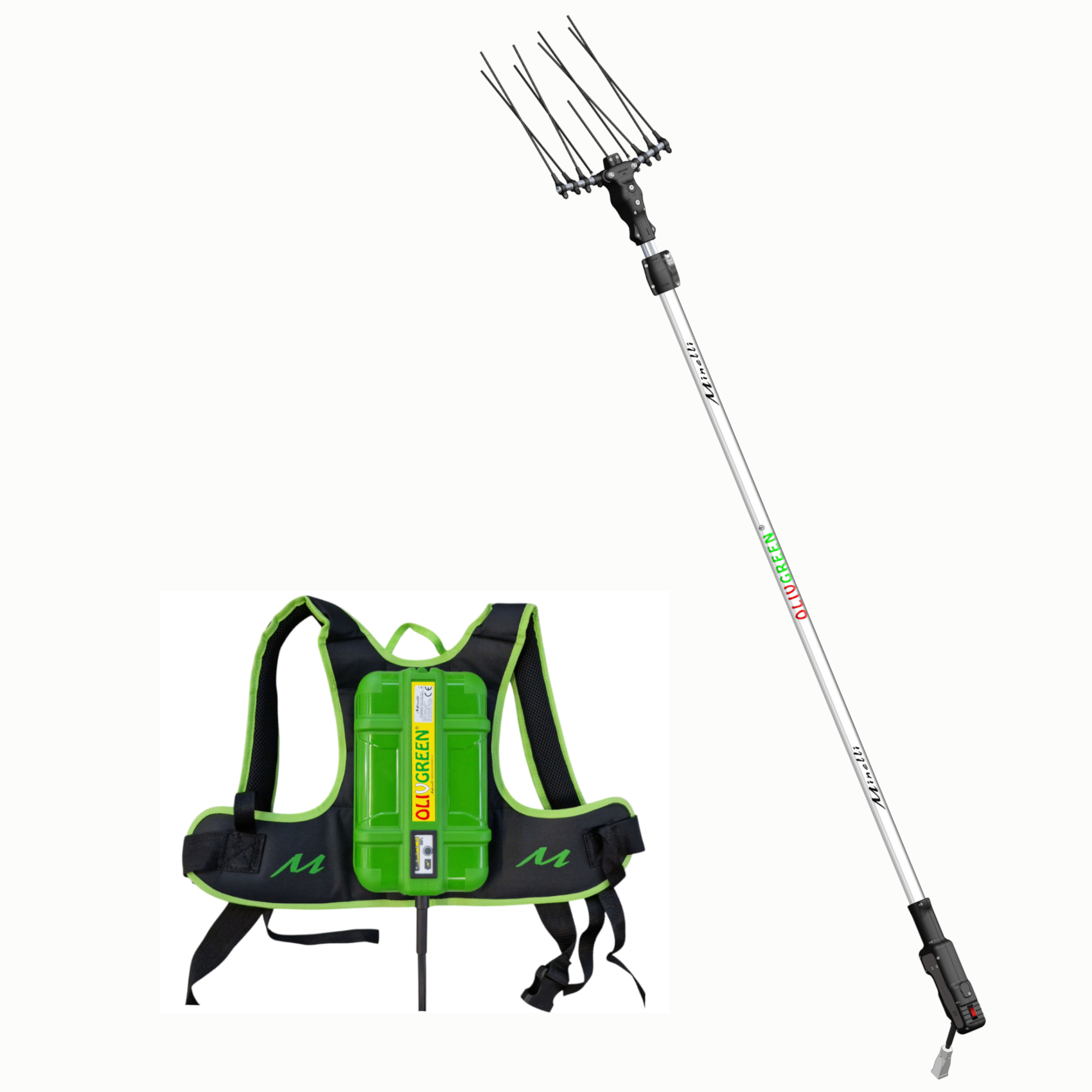 L'abbacchiatore elettrico Olivgreen 500 Plus è realizzato per soddisfare la raccolta "professionale" dell'oliva. Si tratta di una macchina adatta ad operare su varie tipologie d'olivi con vegetazioni più o meno curate. Conformazione e movimento laterali dei pettini assicurano ottimi raccolti. La macchina, molto bilanciata, è composta dal gruppo testa, asta telescopica con relativo sistema di bloccaggio ed impugnatura nella quale è situato il motore 12V a spazzole sostituibili + motoriduttore. L'interruttore ON/OFF è dotato di sistema di sicurezza. Asta in carbonio.