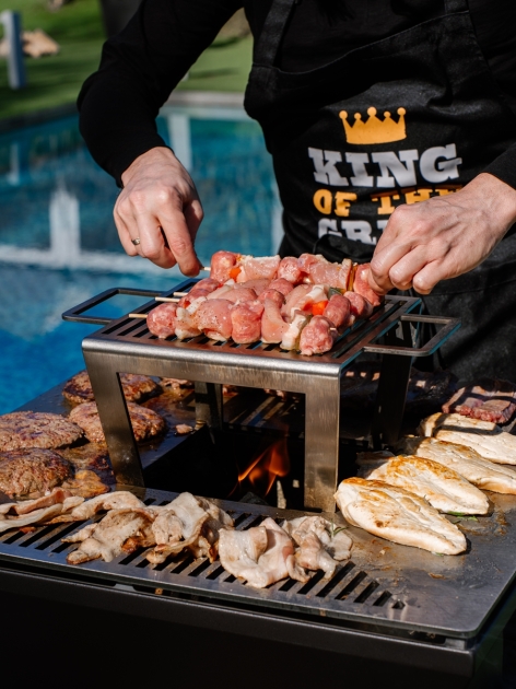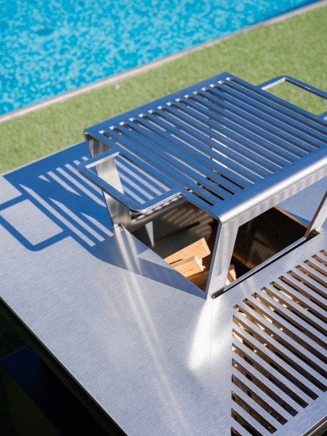 La versione "mini" del classico modello Tower, con dimensioni e peso ridotti. Il piano di cottura da 60 x 60 cm consiste in un'unica piastra in acciaio inox AISI 430 spessa 6 mm. Il braciere è composto da una doppia camera: lo strato interno è in acciaio inox, mentre il mantello esterno è in lamiera verniciata a polveri resistente alle alte temperature. Il braciere è dotato di un pratico cassetto ceneri, utile anche per regolare il tiraggio aria.