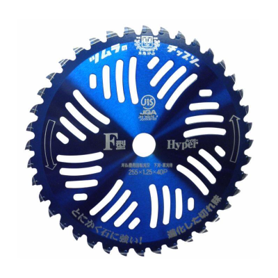 Disco a 40 denti Tsumura con placchette di grandi dimensioni in tungsteno. Anodizzato blu. Made in Japan. Super resistente, studiato specificamente per lavori gravosi. Misure 255x25,4x2 mm.